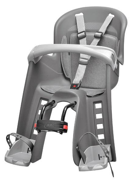 sedačka s držákem na přední rámovou trubku nebo představec kruhového i oválného průměru 22 až 40mm, hrazdička, tříbodový pás, pro děti do hmotnosti...